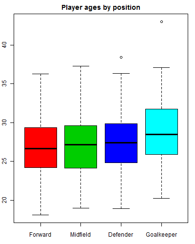 Here’s a graph of player ages by position. Goalies, not surprisingly, tend to be older than players at other positions.