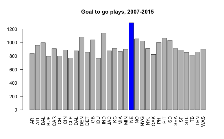 The Patriots have run nearly 200 more goal-to-go plays than any other NFL team since 2007.