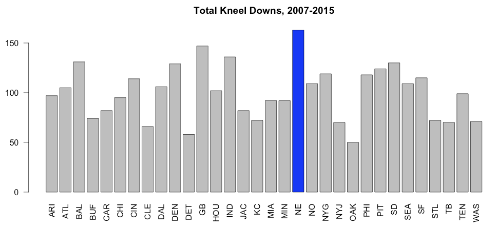 Here’s a plot of the teams who have taken the most kneel downs since 2007.